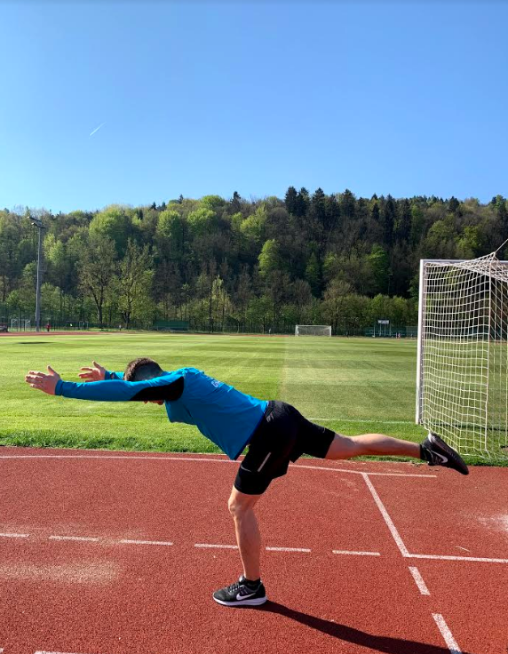 Z DALJŠIM KORAKOM RAZTEGNIMO MIŠICE V KOLKU